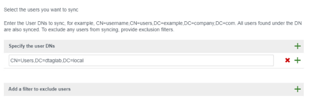 Click on + sign and provide user DN’s (Distinguished Name)