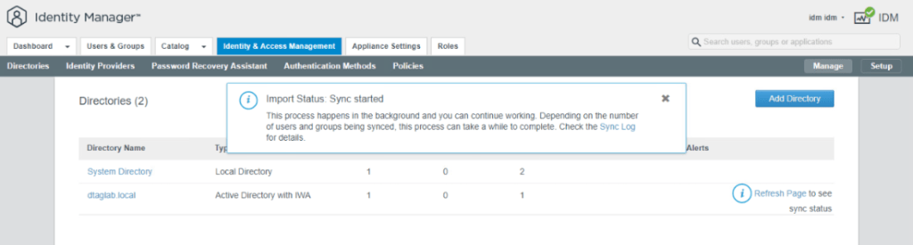 And we are done. We have integrated Active Directory into vIDM and all synced users can be given access to the application that are integrated with vIDM.