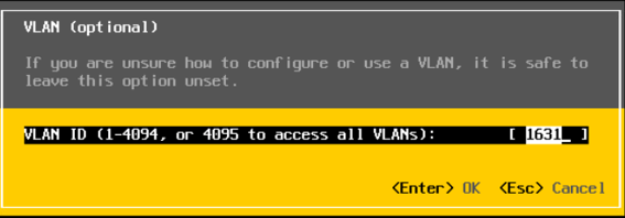 DCUI VLAN settings should be set to 1631.