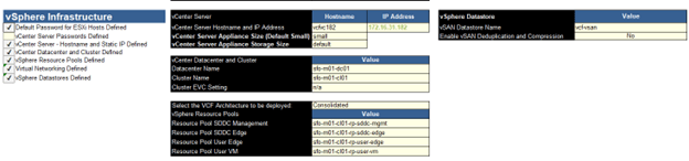 This is a deployment parameter sheet used by CB to deploy VCF infrastructure.