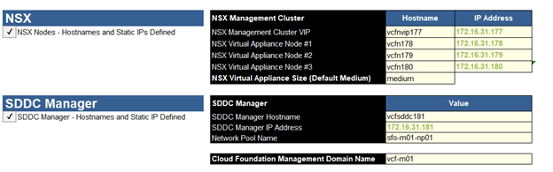 Management Domain ESXi Hosts – All IP’s to be reserved and DNS records in place.