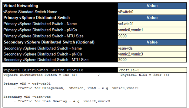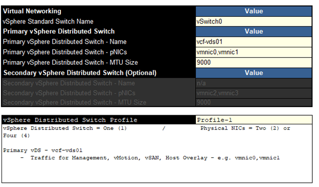 Moving onto “vSphere Distributed Switch Profile” in this sheet. It has 3 profiles. Let’s talk about available options.