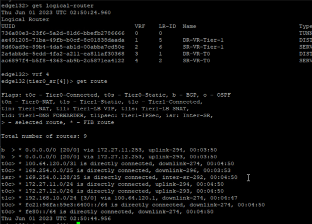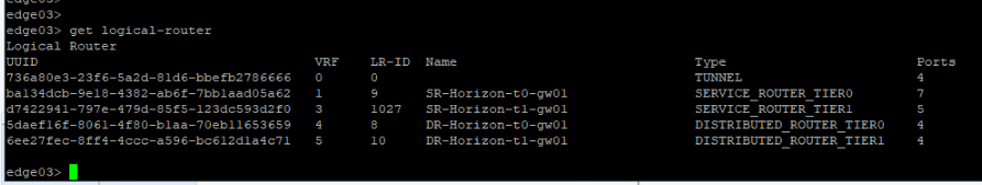 Let’s get into the newly added edge vm and run “get logical-router” cmd,