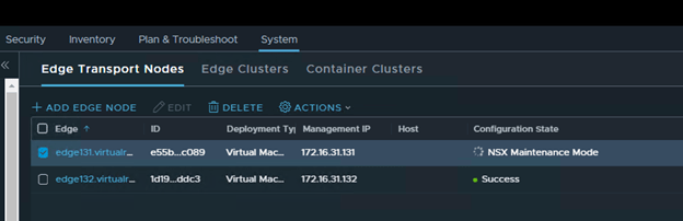 You should see Configuration State as “NSX Maintenance Mode” in the UI.