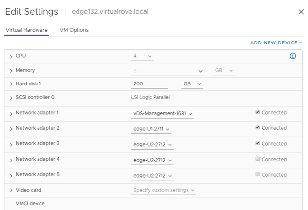 Use the information collected in API call for faulty edge vm and configure the new edge vm the way you see it in the API call. Here is my new edge vm configuration looks like,