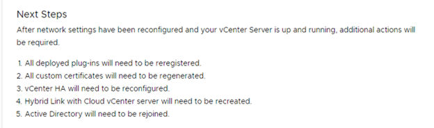 Acknowledge the change. Take backup of vCenter if necessary. It also recommends to unregister extensions before you save this.