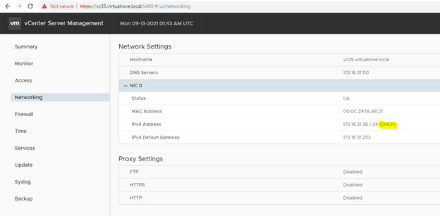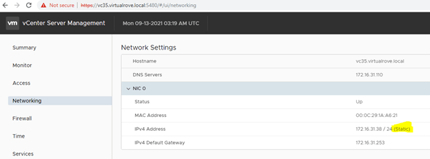 Go back to vCenter Server Appliance Management Interface to verify. You should the ip as static.