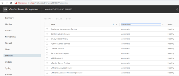 You will be able to access vCenter Server Appliance Management Interface at port 5480. Check the services here…