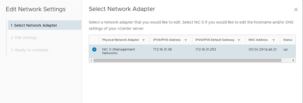 Solution is to change network settings from vCenter Server Appliance Management Interface.